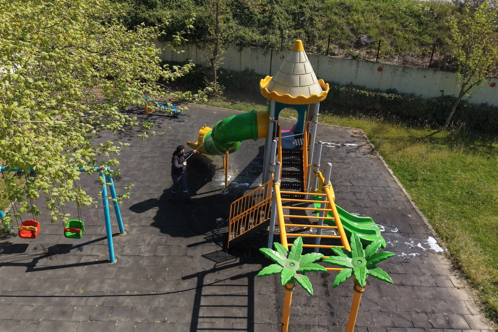 Çayırova Belediyesi Park ve Bahçeler Müdürlüğü’ne bağlı ekipler, ilçedeki parklarda bulunan oyun gruplarında detaylı temizlik çalışması gerçekleştiriyor.