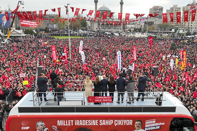 “Biliyorsunuz hep Tayyip Bey’i eleştirmekle olmaz. Hakkını teslim etmek lazım. Ne demişti? 2018 yılında bu tek adam rejimini kurarken. Dedi ki, ‘Ben devleti şirket gibi yöneteceğim.’ Hatırlıyor musunuz? Allah’ı var, şirket gibi yönetti. Bir kabine açıkladı, Sağlık Bakanının özel hastane zincirleri var. Bir kabine açıkladı, Turizm Bakanının otel zincirleri var. Bir kabine açıkladı, Milli Eğitim Bakanının özel okul zincirleri var. Bir görevlendirme yaptı, Et Balık Kurumu Müdürünün Türkiye’deki çiftçiyi, hayvancıyı destekleyecek Et Balık Kurumu Müdürünün yurt dışından et ithal eden şirketi var. Şimdi bu şirketi yıllardır başarıyla yönetiyor. Şirketin adını biliyor musunuz? Bilen var mı? KADAŞ. Nedir KADAŞ? Kara Düzen Anonim Şirketi. AK Parti’nin kara düzeni. İşte bu kara düzen anonim şirketinde bakın rakama; memleketin en zengin yüzde 20’si memleketteki servetin yüzde 90’ını cebine koyuyor. Geriye kalan herkese yüzde 10’u kalıyor. AK Parti’nin kara düzeninde servetin bölüşümü bu şekildedir. AK Parti’nin kara düzeninde birileri açken, birileri toktur. AK Parti’nin kara düzeninde öğrenciler mülakata girer, mülakatta sorarlar. ‘Reis deyince ne anlıyorsun?’ Temel Reis’ diyeni, ‘Ispanak’ diyeni elerler, öbür tarafta dombıra söyleyeni devlet memuru yaparlar. AK Parti’nin kara düzeninde Türkiye’de hayvancılıkla uğraşanlar sürünürken, dışarıdan löp et ithal edenler zenginleşirler. AK Parti’nin kara düzeninde yoksulun çocuğu devlet okullarında zor şartlarda, pislik içinde, okulun hijyeni olmadan, kapısında güvenlik olmadan, veliden zorla para toplanarak bir kara düzende eğitim giderken, zenginin evladı üç yaşından beri kreşlerde, okul öncesi eğitimde, okulların en güzelinde okur. AK Parti’nin kara düzeninde hak yoktur, hukuk yoktur, eşitlik yoktur ama buradan herkes şunu bilsin; biz Cumhuriyet Halk Partisiyiz. Yalnız değiliz. Sadece sosyal demokratlarla değil namuslu, çalışkan muhafazakar demokratlarla, vatanını, milletini seven milliyetçi demokratlarla, her zaman bu meydanlara bizimle birlikte koşan her partiden sosyalist, liberal demokratla, Kürt demokratlarla, Türk demokratlarla, yeter ki vatanın birliğine ve bütünlüğüne, şanlı bayrağa ve Gazi Mustafa Kemal Atatürk’e husumeti olmasın, Türkiye’nin bütün demokratlarıyla biz bu işi başaracağız. Bu kara düzeni yıkacağız. AK Parti’nin kara düzenini yıkmaya var mısınız? Kısa çöpün hakkını uzun çöpten almaya var mısınız? Yoksulların hakkını söke söke almaya var mısınız? Birlikte mücadele edecek miyiz? Birlikte kazanacak mıyız? İşte biz sadece buna gönül veriyoruz.”