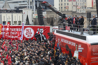“Kayseri’deki senin seçmenine şunu izah edebilir misin? ‘Ben sefalet ücreti veriyorum emekliye, ben açlık sınırının neredeyse üçte ikisini veriyorum asgari ücretliye. Tarımda perişan oldu çiftçi, bugün Türkiye’de kimse halinden memnun değil. Ben son seçimi kazanmıştım ama benden sonra Türkiye’de birinci parti değişti. 25 milyon kişi beni sandığa çağırıyor ama ben kaçıyorum’ dediğinde Kayseri buna ‘İyi yapıyorsun’ mu diyecek? Neden korkuyorsun? Sandığı getir, karşımıza çık. Seçilirsen beş yıl daha görev yaparsın. Ama bu millet 23 Mart günü adayını belirledi. 15,5 milyon kişi, 2 milyon üyem var benim. 15,5 milyon kişi, iki elinde iki baston 93 yaşında ninem çıktı merdivenleri Ekrem’e sahip çıkmak için. Karnında üç aylık bebesi ile hamile kadınlar sandık başına koştu. Ekrem İmamoğlu, ne Özgür Özel’in ne Cumhuriyet Halk Partisi’nin adayıdır. Bu milletin adayıdır. Millet adayını dışarıda ve sandığı önünde istemektedir. Kayseri’den sesleniyorum. ‘Ey Erdoğan, sen sen sen. Yoksan oğlun, o da ise damadın istediğin hangi bakanınsa o bakanın. Çıksınlar karşımıza. Biz buradayız, adayımız burada, sandık burada. Hodri meydan Erdoğan, hodri meydan. Kayseri’den meydan okuyoruz sana. Biz bu ülkeyi daha iyi yönetiriz. Biz bu ülkede herkesin yüzünü güldürürüz.”