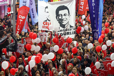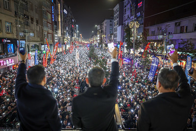 “Tayyip Erdoğan artık yenilmişti. Tayyip Erdoğan’ı yenen biri vardı. Ama artık Türkiye’nin yeni bir yenilmezi vardı. Önce kendi ilçesinde bir kez, ardından 2019’da iki kez, ardından bu seçimlerde bir daha; dört sefer Erdoğan’ı yenen ve asla yenilmeyen Ekrem İmamoğlu vardı. 19 Mart günü Ekrem İmamoğlu’nu gireceği ön seçime dört gün kala, dört gün gözaltında tuttan, sonra tam ön seçim günü hapse atan iktidar şunu hesap edemedi: O gün, 23 Nisan günü 15,5 milyon kişi, biri elinde iki bastonuyla iki büklüm, 90 yaşında; biri evladının koluna girmiş; 104 yaşında; biri karnındaki üç aylık hamile olduğu bebeğiyle o bebeğinin geleceği için adayını seçmeye ve belirlemeye gitmişti. İşte 23 Mart’ta 15,5 milyon kişinin aday gösterdiği, sizin üç kez üst üste İstanbul’a seçtiğiniz Ekrem Başkanımız bundan sonra ne yaparlarsa yapsınlar, her türlü haksızlığa karşı mücadelesini sürdürüyor. Eninde sonunda onu Cumhurbaşkanı yapacağız. ‘Cumhurbaşkanı İmamoğlu.’”