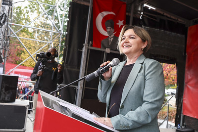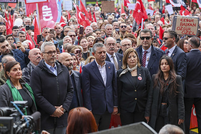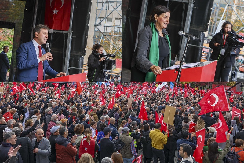 “Suçsuz yere 207 gündür hapiste bulunan Cumhurbaşkanı adayımız Ekrem İmamoğlu’na, Adana gibi başkan Zeytan Karalar’a, Toroslar’ın yiğit evladı Muhittin Böcek’e, onların da içinde olduğu 16 belediye başkanımıza, yüzlerce siyasetçiye, bürokrata, Türkiye’deki tüm siyasi tutsaklara, Selahattin Demirtaş’a, Figen Yüksekdağ’a, fikrinden ve düşüncesinden dolayı içeride kim varsa ona sahip çıkmaya geldik. Diğer yandan ‘Birinden kurtuldum, sıra ötekine gelsin’ diye Mansur Başkan’ı hedefine almaya çalışanlara ‘Aklınızı başınıza alın, Mansur Yavaş yalnız değildir’ demeye geldik. Bugün burada sadece Türkiye’den dostlarımız yok. Bugün Avrupalı kardeş partilerimizden çok sayıda temsilci burada. Sosyalist Enternasyonal’den, Avrupa Sosyalist Partisi’nden, Yeşiller’den çok değerli dostlarımız, Avrupa Parlamentosu’ndan çok değerli temsilciler burada. Mikrofonda gösterdikleri dostlukla, Türkiye’ye sahip çıkarak, ‘Türkiye’yi seviyoruz’ diyerek, dostumuz olduklarını dosta da dost olmayana da haykıran Dario Nardella’ya, Giacomo Filibeck ve Vula Tsetsi’ye yürekten teşekkür ediyoruz. Hoş geldiler, şeref verdiler. Tüm milletvekillerine, ev sahipliği yapan Brüksel belediye başkanına, burada başkan yardımcısı ile temsil edilen, şehir dışından mesajını buraya ileten Roma’nın, Amsterdam’ın, Barselona’nın, Budapeşte’nin değerli belediye başkanlarına, kardeşimiz Selanik belediye Başkanına, Timisoara, Köln, Frankfurt, Utrecht belediye başkanlarına bu meydana verdikleri destek ve bize gösterdikleri ev sahipliği için yürekten teşekkür ediyoruz. İyi ki varlar, iyi ki bizimle birlikteler.”