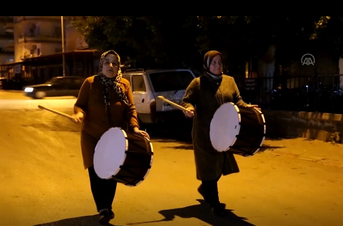 Kadın davulcular, ritim ve manilerle vatandaşları sahura kaldırıyor.