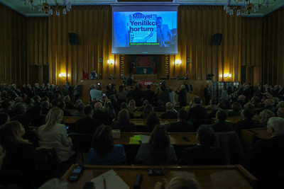 “Biz bu kara düzen anonim şirketi tarafından yönetilen bir ülkede yaşamak istemiyoruz. Biz hukuk devleti olarak Türkiye Cumhuriyeti’ni istiyoruz. Mahkemede, gelirde, sosyal hayatta adalet istiyoruz. Terörsüz ve demokratik bir Türkiye istiyoruz. Elbette barış istiyoruz, zulmün her türlüsünün bitmesini istiyoruz. 19 Mart darbesi ve onun cuntası dağıtılmalıdır. İddianame yazılmış, deliller toplanmış, kaçma şüphesi diye bir şey yok. Zaten kaçsalar memnuniyet yaratırlar, korktuklarından içeride tutuyorlar. Ama bugünden tezi yok artık iddianame kabul aşamasındadır. Tensip zaptı düzenlenecek, mahkeme gün verecek ve bundan sonrasına bir yön verecektir. Buradan açıkça söylüyorum: Bağımsız yargıya söylüyorum. Yargıyı bağımsız kılmayan, kendisine köle edenlere söylüyorum: 19 Mart’tan bugüne yaşananlar ne bize ne size, en önemlisi Türkiye’ye yaramadı, yaramaz. Millete yaramıyor. Millet hizmet bekliyor. Millet siyasetin birbiriyle kavga etmesini değil; hizmette rekabet etmesini bekliyor. Kim daha iyi yönetir, onu duymak istiyor, onu bilmek istiyor. Yarışmanın yargı üzerinden olmasını değil; siyasi zeminde olmasını istiyor. Kararı yargının değil, bizatihi kendinin vermesini istiyor. ‘Gazi Mustafa Kemal’den emanet sandığı kimseye bırakmam. Burada karar benimdir, patron benim’ diyor millet. Burada beklentimiz şudur: Biraz önce izlediniz. Aynı suçlarla yargılandı Erdoğan. Bir gün kapıya polis gitmedi, koluna girmedi, nezarethane görmedi, yargılamanın ilk aşaması da kesinleşmesi de tutuksuz oldu. Ceza aldığında bile telefonla davet aldı. Gitti istediği kişiyle, istediği cezaevinde yattı. İçerde ‘Bu şarkı burada bitmez’ diye kasetler çıkardı. Şimdi metrolarda sesi kesilen, resimleri indirilen, kendisine daha yargılama bile başlamadan ‘suç örgütü’ diye iftira atılan arkadaşlarımızı içeride tutmayı bırakın. Tutuksuz yargılama dönemine geçilirse, bu mahkeme heyetinin bundan önceki AK Toroslar çetesinden ayrıştığını göreceğiz. Bu mahkeme heyeti yargılayacak elbet, eldeki iddianameyi kabul ederse. Onlar soracak, biz söyleyeceğiz. Düzenlenen iddianameyi satır satır cevaplayacağız. Bunun tutuksuz olarak yapılması, bugüne kadar süren zulmün bitmesi ve çocukların annelerine, babalarına kavuşması, belediyelerin başkanlarına kavuşması, milletin de bu işte bir karar vermesi lazım. Biz kendimize, arkadaşımıza güveniyoruz. Bu yüzden bugün Sayın Bahçeli’nin de bir kez daha ifade ettiği, 9 Mayıs’tan beri talep ettiğimiz, hem TRT’den bir kanaldan devamlı ve isteyen her kanalın canlı vereceği yargılama istiyoruz.”