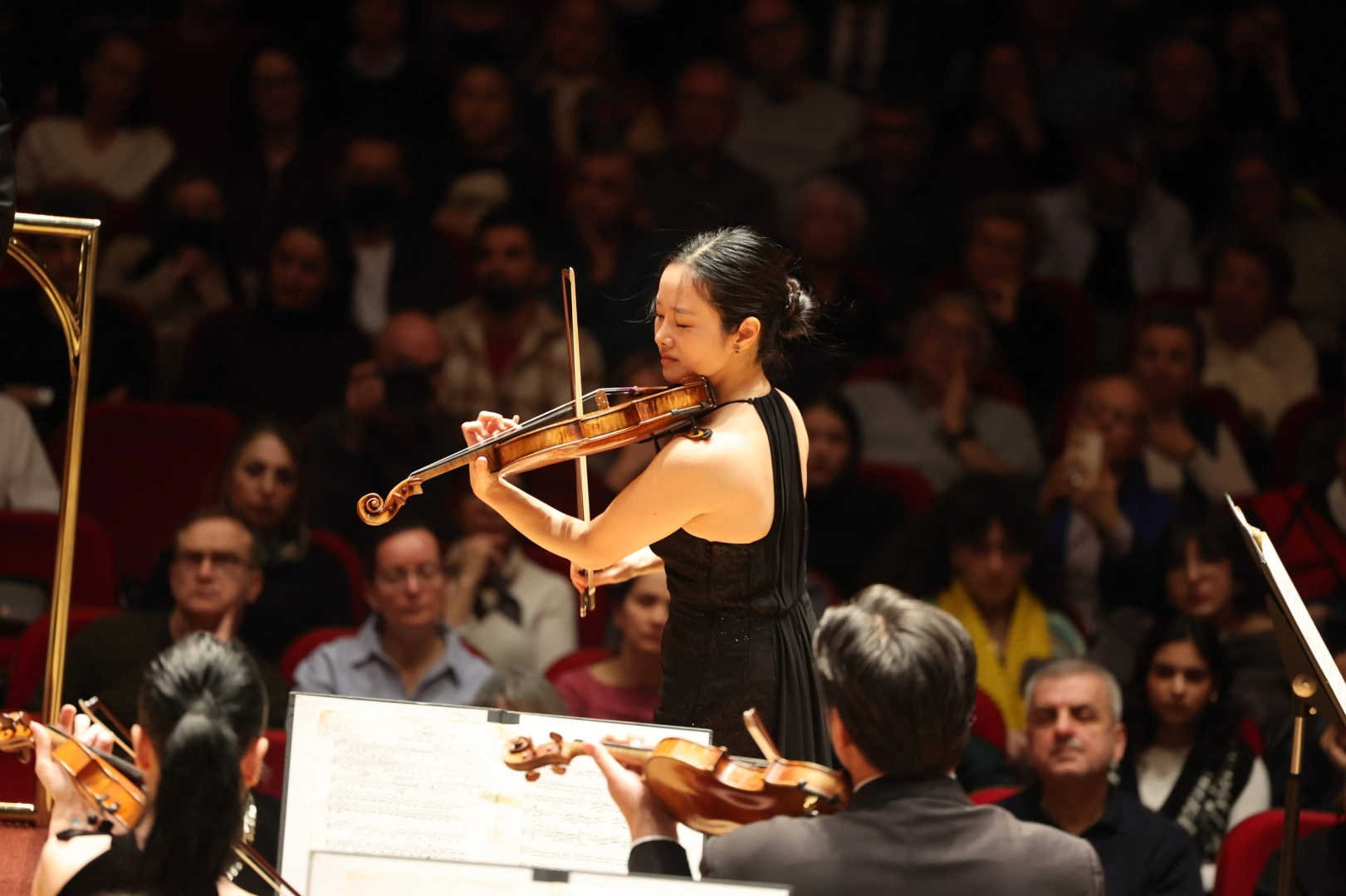 İzmir Büyükşehir Belediyesi Ahmed Adnan Saygun Sanat Merkezi'nde (AASSM) iki büyük isim aynı sahnede İzmirlilerle buluştu. İzmir Devlet Senfoni Orkestrası’nı (İZDSO) yöneten şef Christoph-Mathias Mueller ve keman virtüözü Bomsori Kim izleyenlerden tam not aldı.
